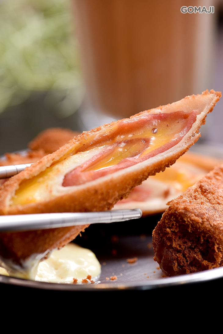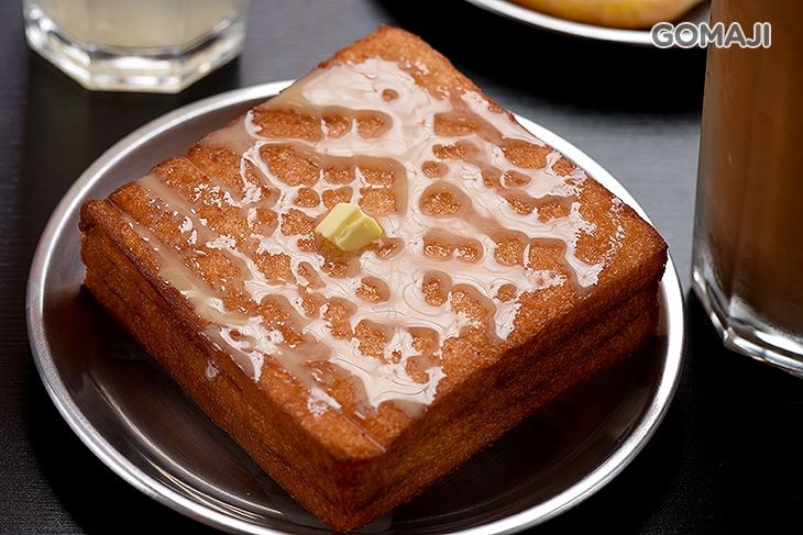 煎炸得金黃酥香的法式吐司,中間塗抹著鹹香帶甜的花生醬,三層相疊後放上鹹奶油,淋上焦糖或是煉乳品嚐,經典的港式茶點──西多士,香甜濃郁的滋味、香酥鬆軟的吐司麵包,讓人難以抵擋的甜蜜風味,絕對要點一份來好好享受!