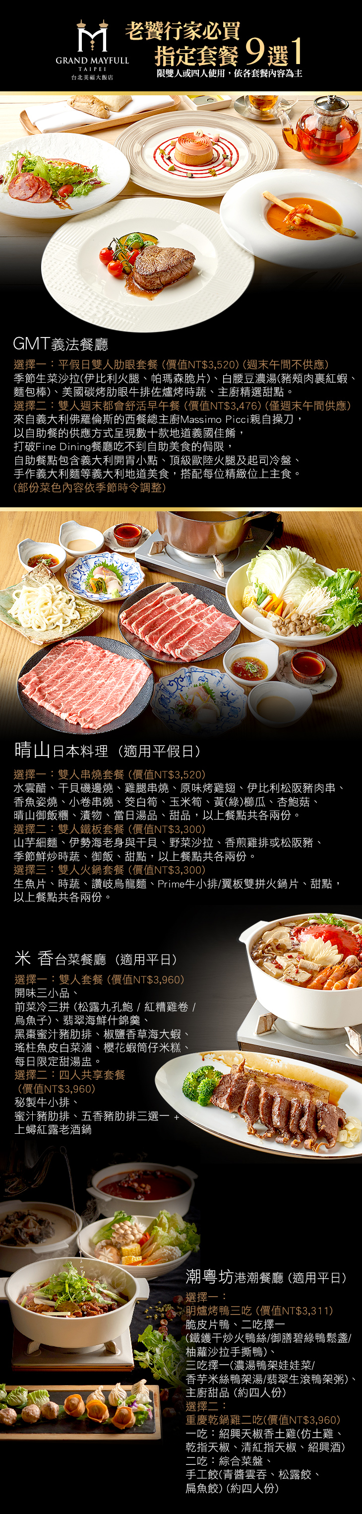 台北美福大飯店-潮粵坊港潮餐廳/米香台菜餐廳/晴山日本料理/GMT義法餐廳