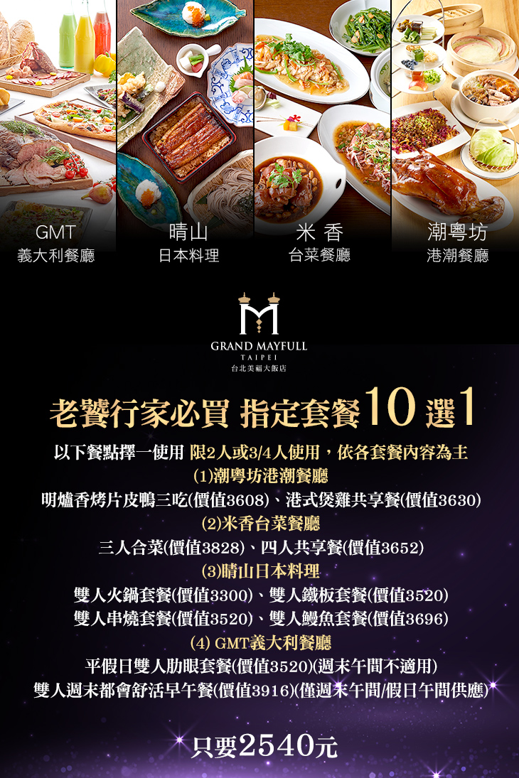 台北美福大飯店-潮粵坊港潮餐廳/米香台菜餐廳/晴山日本料理/GMT義大利餐廳
