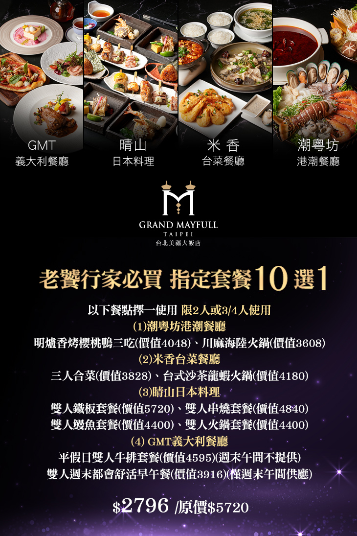 台北美福大飯店-潮粵坊港潮餐廳/米香台菜餐廳/晴山日本料理/GMT義大利餐廳