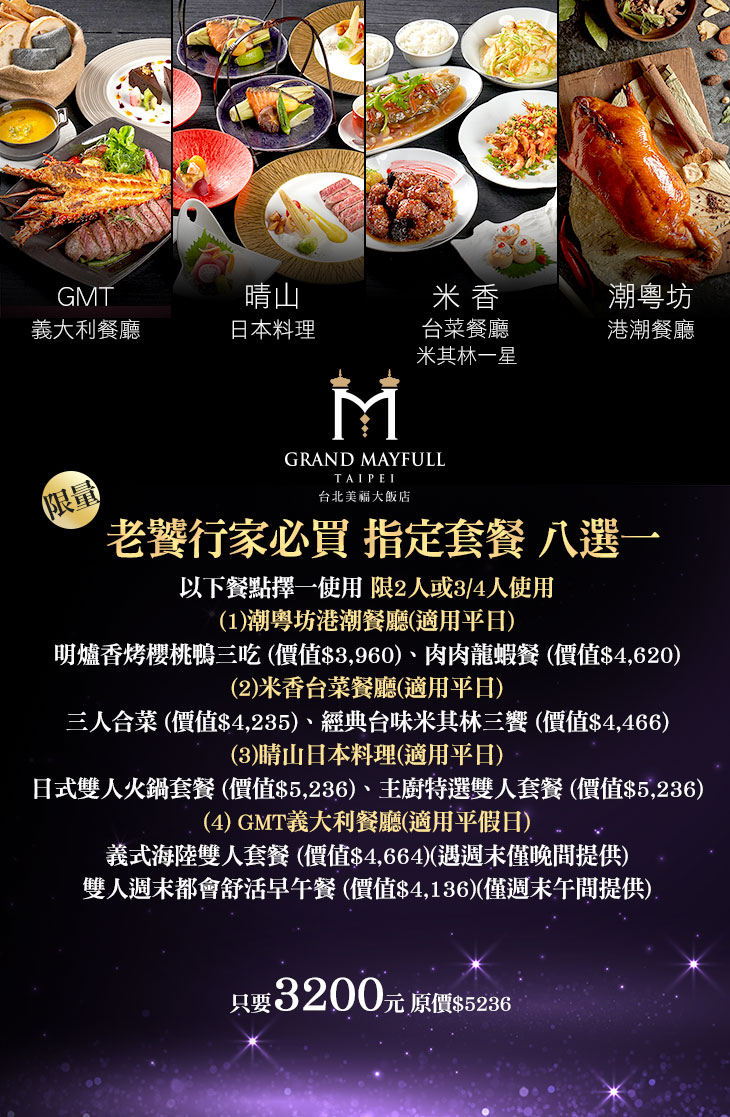 限量!老饕行家必買!指定套餐 八選一(限2人或3/4人使用,依各套餐內容為主)