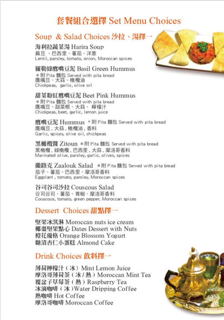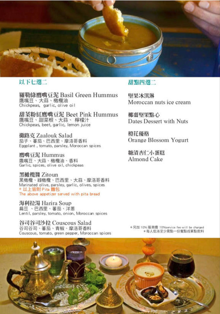塔吉摩洛哥料理最近在敦化北路開了新分店!從老闆本身、裝潢、料食、餐具等,通通都有著獨特的摩洛哥風!各大電視節目報導!提供超正統的道地風味,滿滿的味覺與視覺饗宴!"塔吉" (Tajin) 在摩洛哥話的意思為陶鍋以及使用陶鍋所細火燉煮的料理,摩洛哥陶鍋在燉煮過程中不加水,可以鎖住食材的原味及營養,在美味之餘也幫您的健康把關!