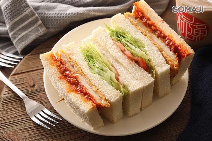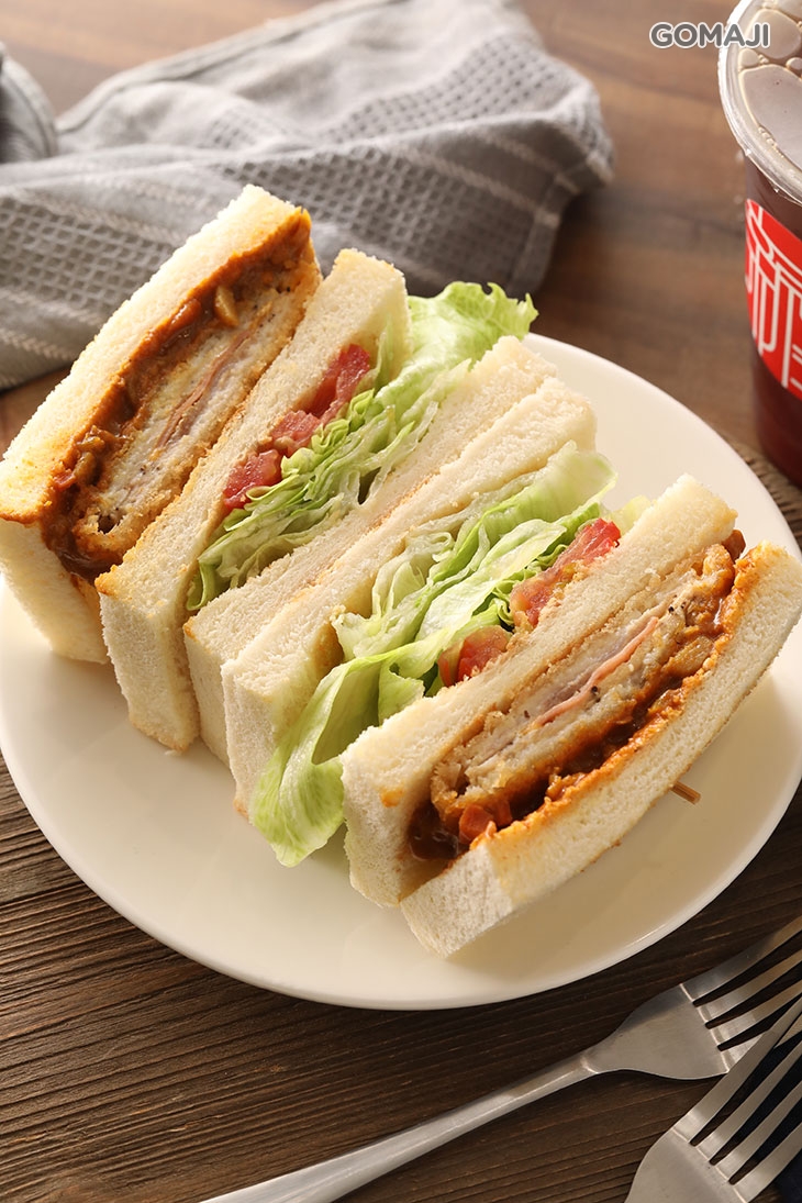 以鬆軟吐司包夾著炸至今黃酥香的日式咖哩藍帶豬排,還有清甜爽脆的生菜以及番茄增添層次,大口咬下享受這紮實飽滿的迷人美味,每一口都令人超滿足!