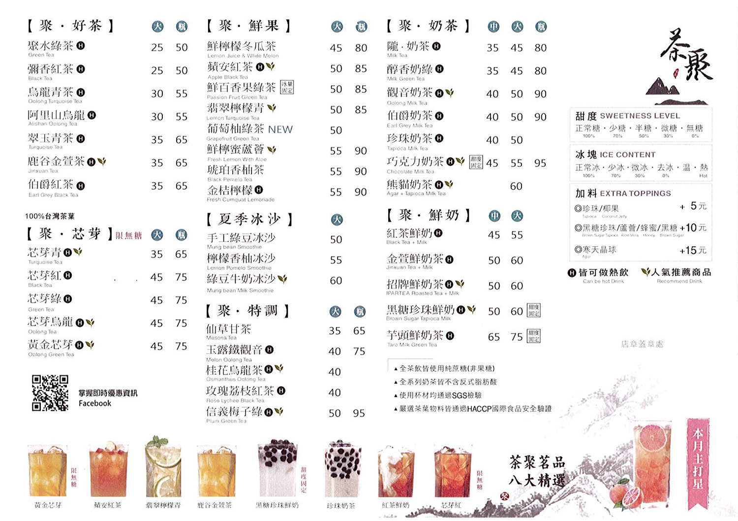 在地人真心推薦!「當我們因找茶而相遇,因品茶而相聚,時光短暫,但我們十分珍惜。」鄰近京站時尚百貨附近的茶聚,本著創辦人理念「不敢給自家小朋友吃的東西,絕不賣給客人。」致力打造最健康、最天然、最美味的天然茗品,堅持不添加任何香精色素,僅以最自然的方式呈現茶飲本身的風味。在飲品市場高競爭的壓力下,茶聚的堅持,讓他們在紅海中殺出一片藍海,走出屬於自己的品牌,闖出自己的名號,建立更多茶聚老主顧。
