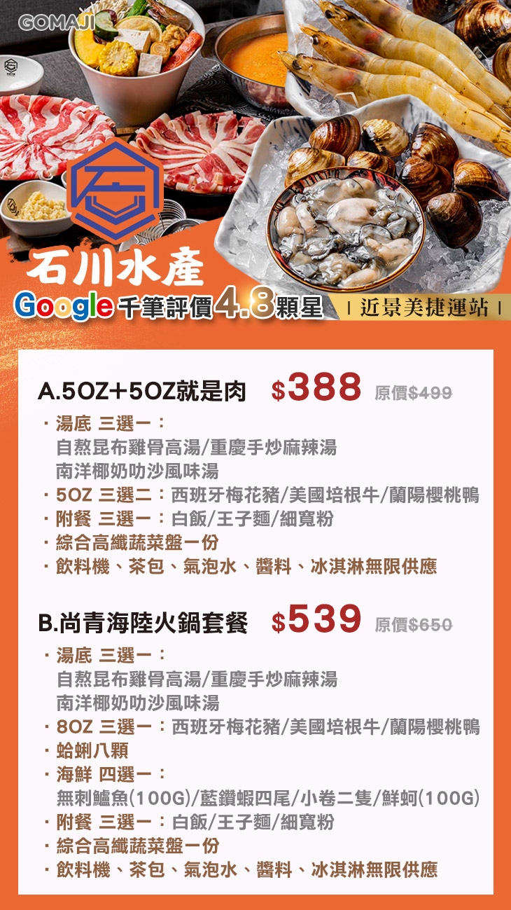 位於台北市文山區景美捷運站二號出口的石川水產(原石水產火鍋)堅持使用最新鮮的食材,用心提供最優質的服務,因此獲得許多顧客的青睞,在這裡不論您是肉食主義還是海鮮愛好者,皆能滿足您的胃口!舒適整潔的環境給您優良的用餐體驗,趕緊一起來吃鍋吧!