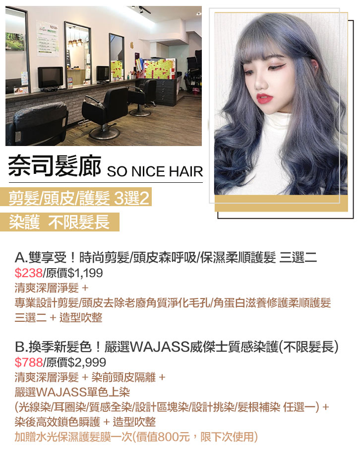 A.雙享受!時尚剪髮/頭皮森呼吸/保濕柔順護髮 三選二