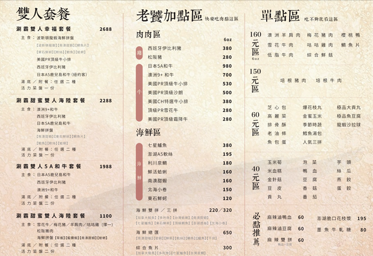 涮霸精緻小火鍋(新莊幸福店) MENU