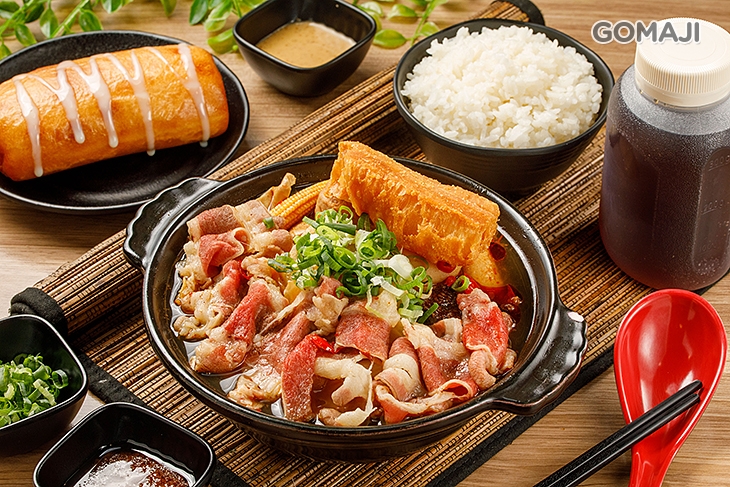 採用牛油、豆瓣醬、辣椒、精製研磨的中藥香辛料相混合,以文火熬炒而成,將食材精粹製成濃縮基底醬,再倒入店家煉製多時的鮮甜高湯,層層堆疊出麻、香、辣、甘多層次風味,經典麻辣湯頭完美誕生,無辣不歡的您必來一鍋!