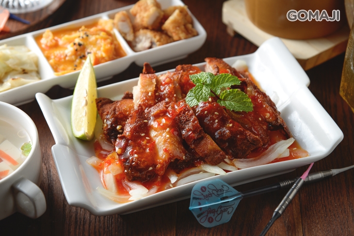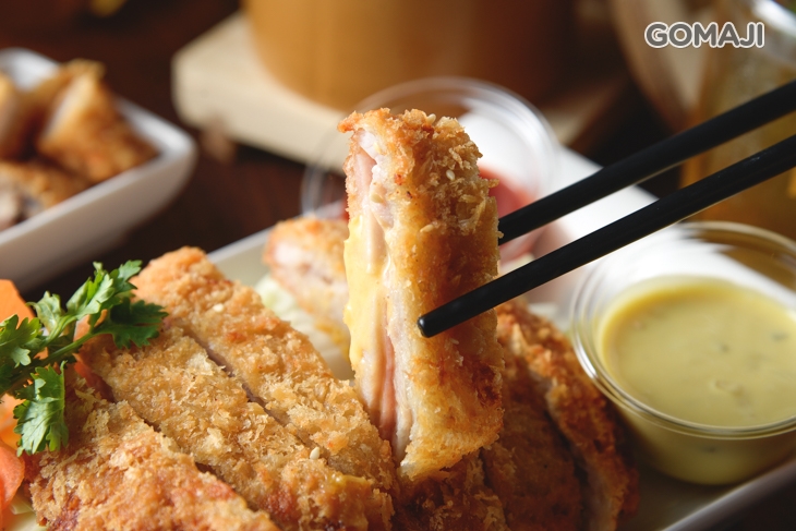 炸至金黃酥香的起司豬排一入口就有著喀滋喀滋的聲響,外酥內嫩在口中迸發起司的鹹香,搭上豐富配菜一起享用,絕對好滿足!