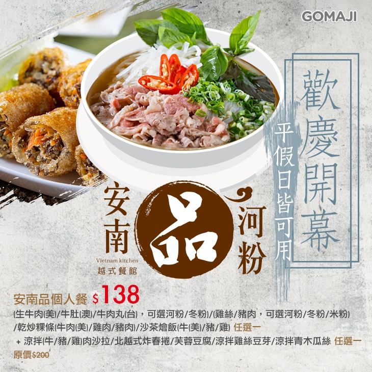 首次合作店家精選!位於台中市西屯區西屯路上,鄰近逢甲商圈,平價道地的安南品河粉歡慶開幕!專賣道地越南料理,用餐環境雅緻寬敞,有別於一般越南料理的樸素小雅,服務態度親切大方,更重要的是招牌河粉份量充足大碗,食材鮮美優質,搭配經典湯品、小菜更是美味加乘,令不少朋友一吃成主顧,誠摯歡迎您一同'品'河粉!