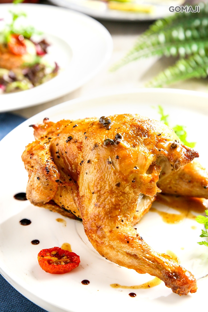 嚴選新鮮雞肉,以爐烤方式料理,金黃油亮的外皮伴隨著噴香氣息,皮酥肉嫩透著鹹香雞汁,辛香料的迷人風味更是增添層次,每一口都讓人回味無窮!
