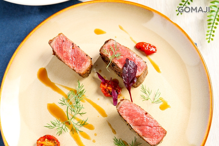 主廚將火候的掌控表現得精準俐落,粉嫩的肉質伴隨著恰到好處的鹹香多汁,厚實談嫩卻不過硬過柴,每一口都能品嘗到碳烤的香氣與牛肉的鮮美彈牙!