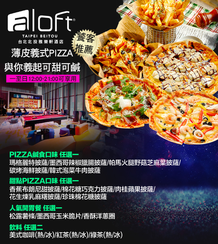 “Aloft”是W HOTEL的姐妹品牌,同樣強調”潮”的設計感,這間是全世界第122家、亞洲第22家Aloft,也是台北市北投區第一家國際連鎖酒店品牌。是台灣第一家取得LEED新建築 (LEED – NC)的國際連鎖酒店,館內空間寬敞,融合開放空間、文化、歷史和現代化趨勢,誠邀您來此盡情體驗最難忘的台北深度旅遊。