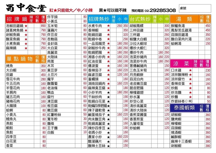 位於永和的蜀中食堂,周遭美食餐廳雲集,不僅有各國美食料理,還有台式熱炒小吃林立,堪比美食的一級戰區,然而,憑藉著獨到的菜色與美味,蜀中食堂突破了戰區,成為在地內行人都知道的人氣餐廳,也因為營業時間較晚,非常適合親朋好友在下了班後前往談天聚餐、吃香喝辣,無論是晚餐,還是宵夜場,這裡都奉陪到底!食堂菜單除了川、湘菜系外,為了配合台灣人聚餐時的喜好,也貼心推出了台式快炒、湯品,道道都是極上佳品。
