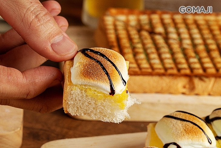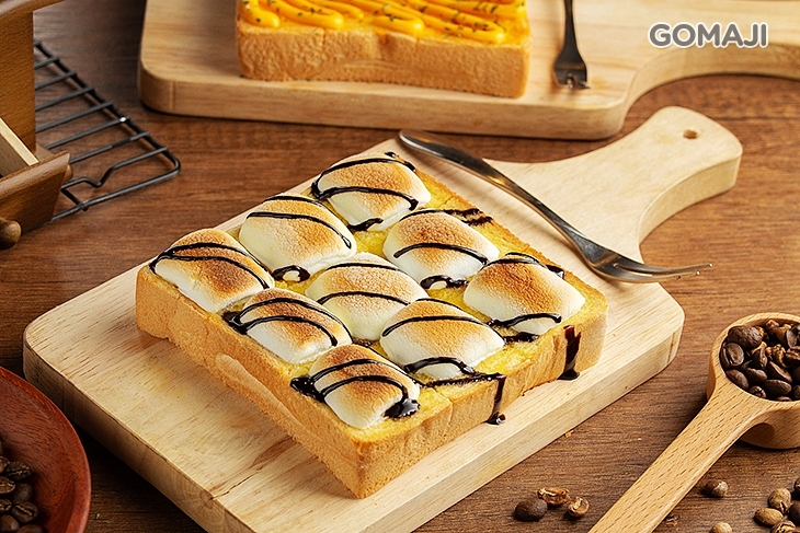 說到厚片吐司料理,那可絕對不能不提棉花糖厚片吐司了!在酥甜鬆軟的厚片吐司上,整齊地擺放上鬆軟彈牙的棉花糖,送入烤箱,讓棉花糖的雪白渲染上一抹迷人的焦香琥珀,入口即化的甜蜜口感,和吐司堪稱絕配!