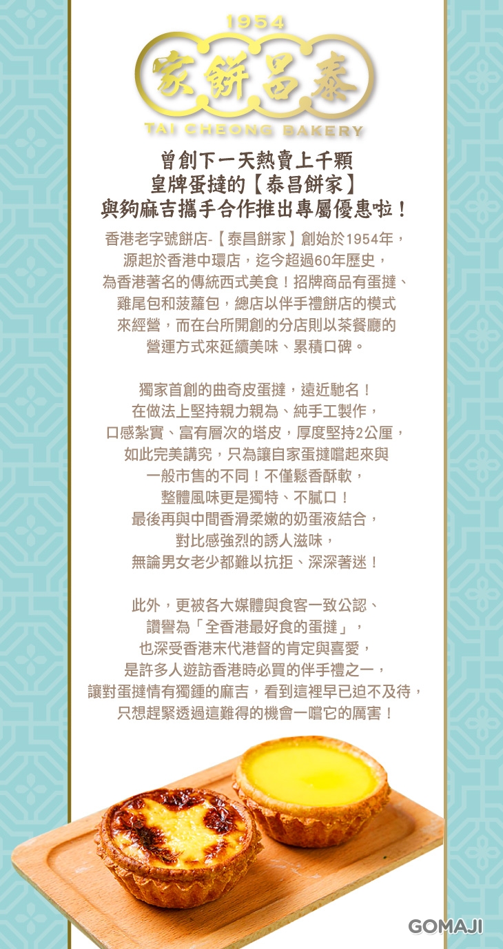★ 曾創下一天熱賣上千顆皇牌蛋撻的【泰昌餅家】與夠麻吉攜手合作推出專屬優惠啦!