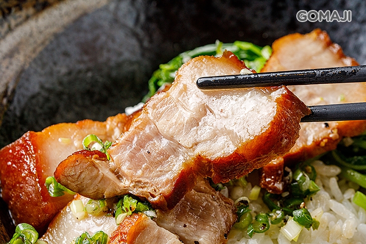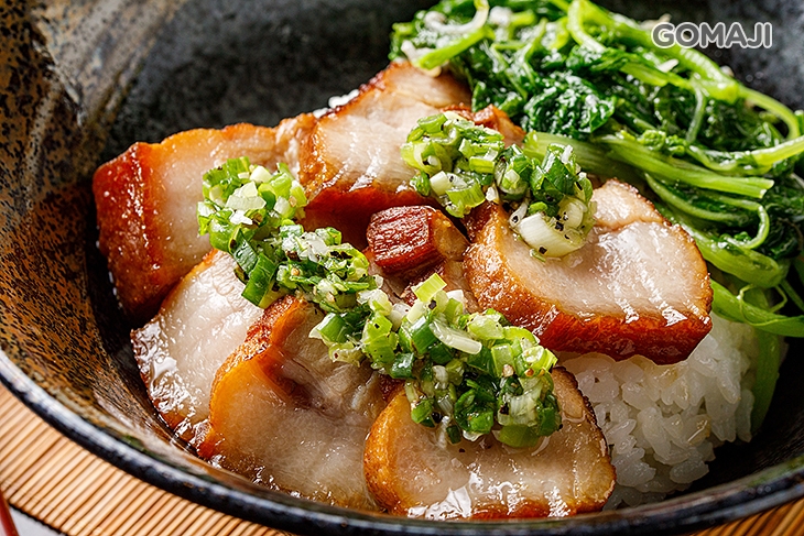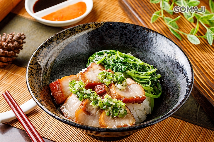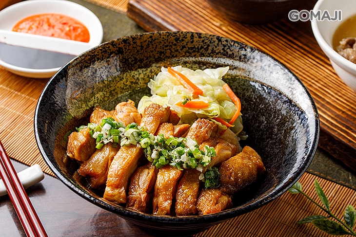 除了蔥鹽雞腿,還有這道美味不是蓋的蔥鹽五花,軟Q微微甜香的米飯,上頭沾附了薄薄一層蔥鹽的醬香與五花肉的脂香 ~ 一口咬下,肉肥嫩、ㄉㄨㄞㄉㄨㄞ彈牙,鹹甜交緻的滋味,讓人感受到這手作帶來的感動,單點一份,再搭配招牌肉骨茶,一餐輕輕鬆鬆就解決啦!