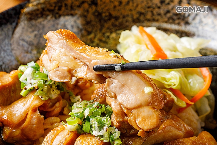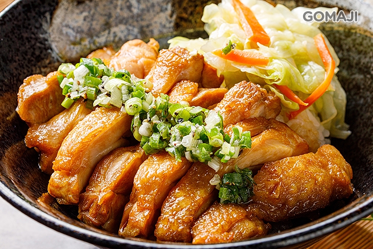 這道大漠蔥鹽雞腿蓋飯,光是雞腿的用料就相當實在!以白飯為基底,佐上時令配菜,再放上塊塊肥嫩入味的蔥鹽雞腿,趁熱品嚐,雞腿皮Q肉香,與上頭店家自製的蔥鹽醬汁搭配,美味又涮嘴 ~ 用餐時刻,來店外帶一份,幸福滿分!