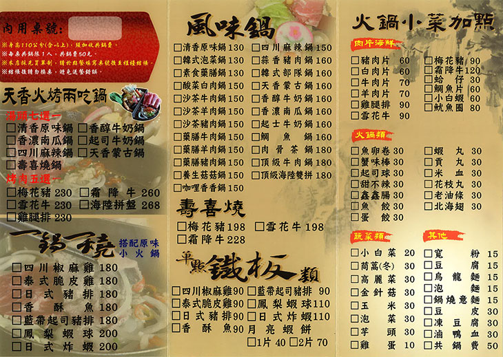 天香皇品成立於2015年,不斷研發新口味及火烤兩吃鍋為產品優勢,增加一鍋一烤鍋及單點燒肉類,給消費者與眾不同的味蕾感受。 豐富多樣性的選擇滿足全家大小及每張挑剔的味蕾,現在誠摯的邀請您闔家光臨。