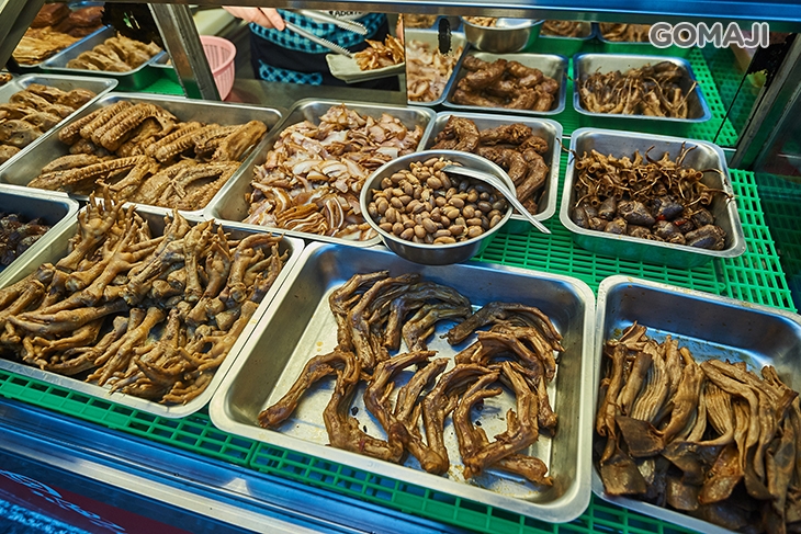 ☞鴨舌、滷花生、豆皮、海帶、滷鴨心、鴨脖子