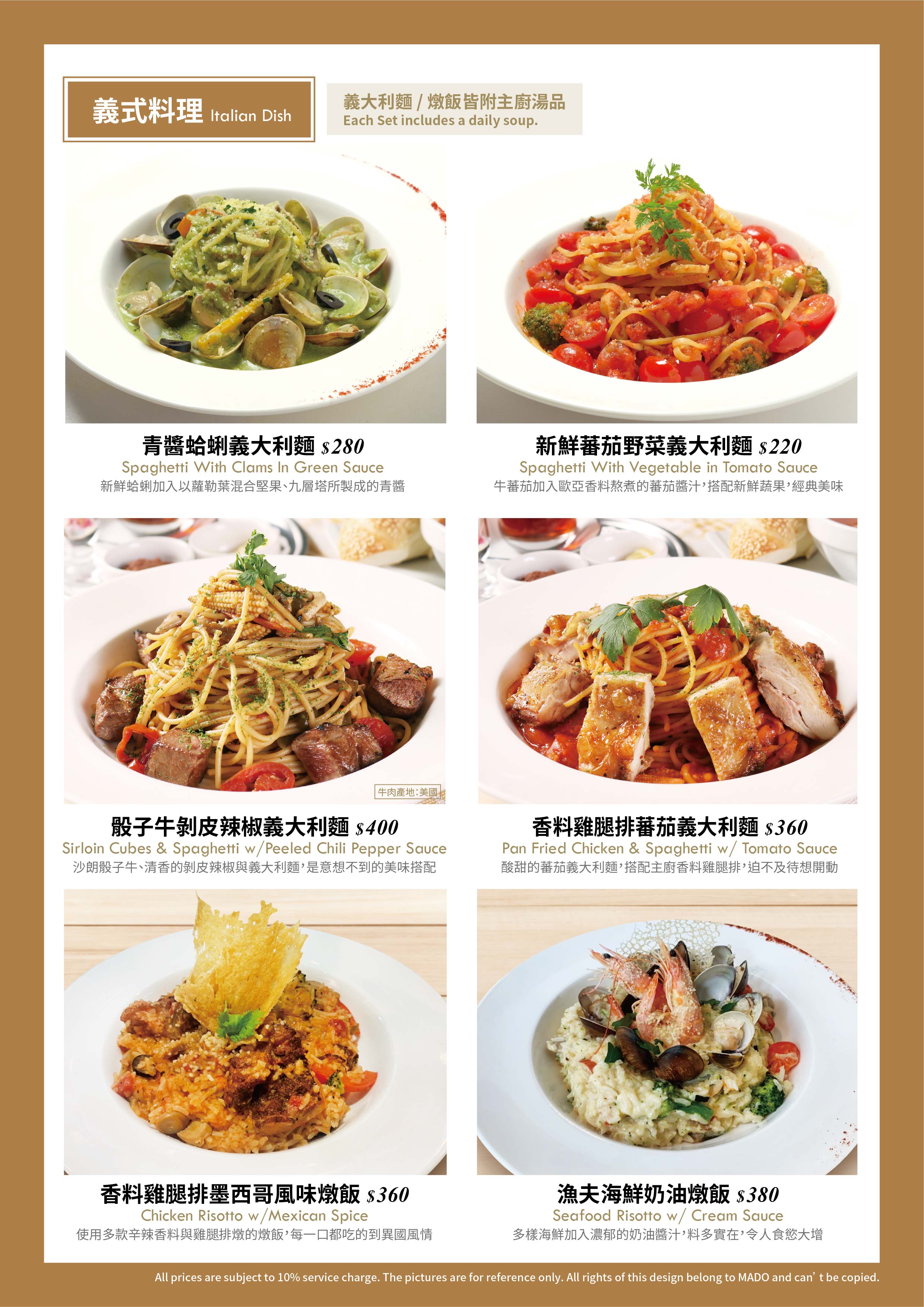 →骰子牛剝皮辣椒義大利麵+主廚濃湯