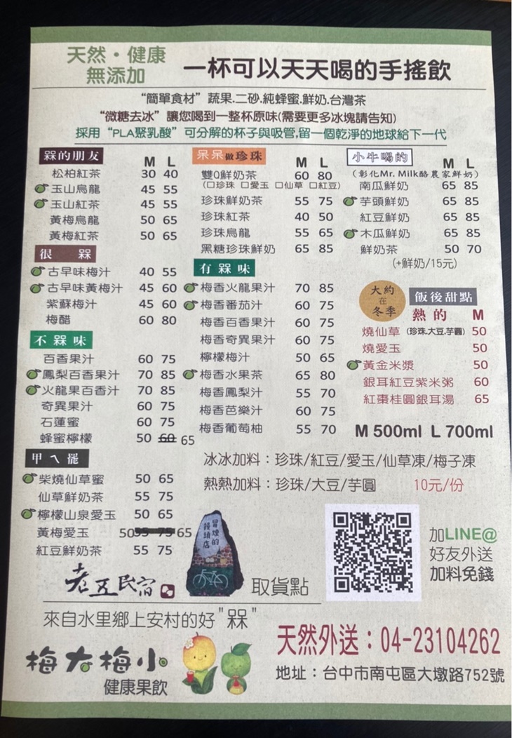 「梅子」製成飲品,以為只有單純的梅子飲嗎?那各位就錯了!「梅大梅小」用梅子為基底,帶著山上小農的友善農作,延伸出多樣化健康果飲,讓大家喝得安心又放心!深信只有天然食物的美味、自家手做的食材、大自然給予的色調,才能調配出一杯純天然的好喝飲品,無添加任何添加物就能超好喝!秉持著回歸自然、環保精神經營,相信有一天不僅能拉近農村與都市的距離,還能讓更多人深刻了解自然食材的美好!