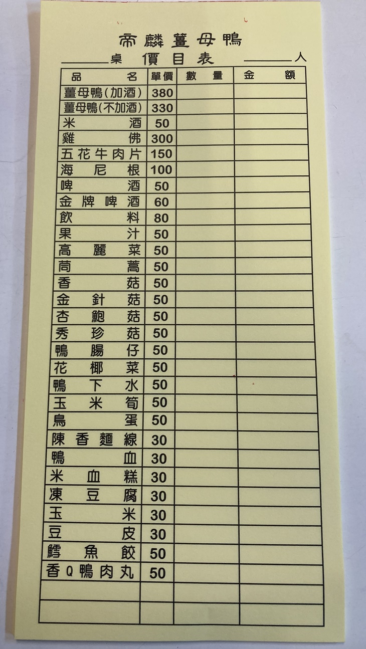 帝麟食補 薑母鴨漢口店 MENU