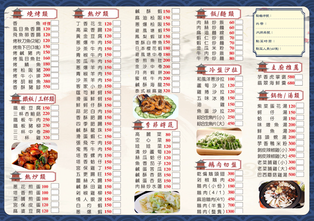 菜色內容依季節時令調整,實際品項、價目依現場提供為主