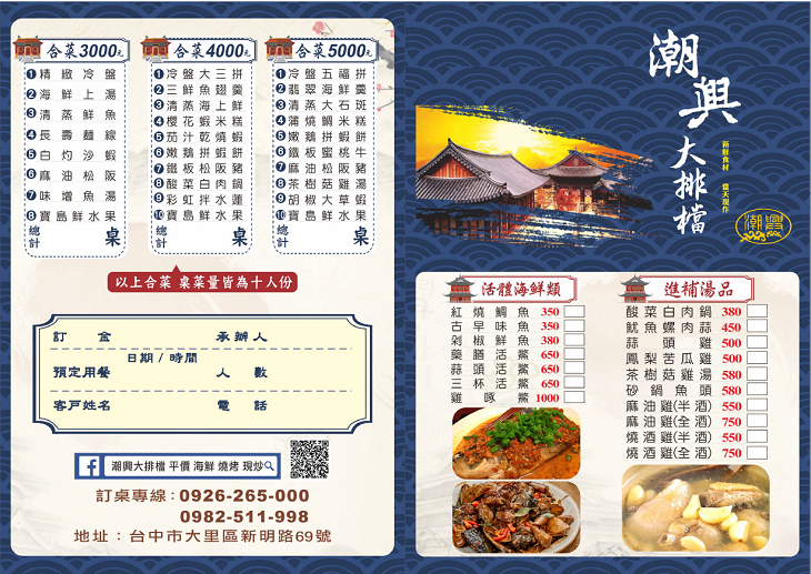 寬敞的用餐空間不僅僅瀰漫著料理的香氣也有著濃厚的人情味!堅持嚴選新鮮食材,烹製出多種美味迷人餐點,提供多樣化選擇,每次來都擁有滿滿的驚喜!適合與三五好友一同相聚享用美味佳餚,熱鬧的氛圍與尚青的美味令人難以忘懷,下班後聚餐的最佳首選就非潮興大排檔莫屬 !