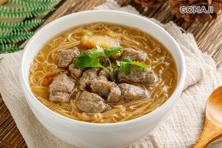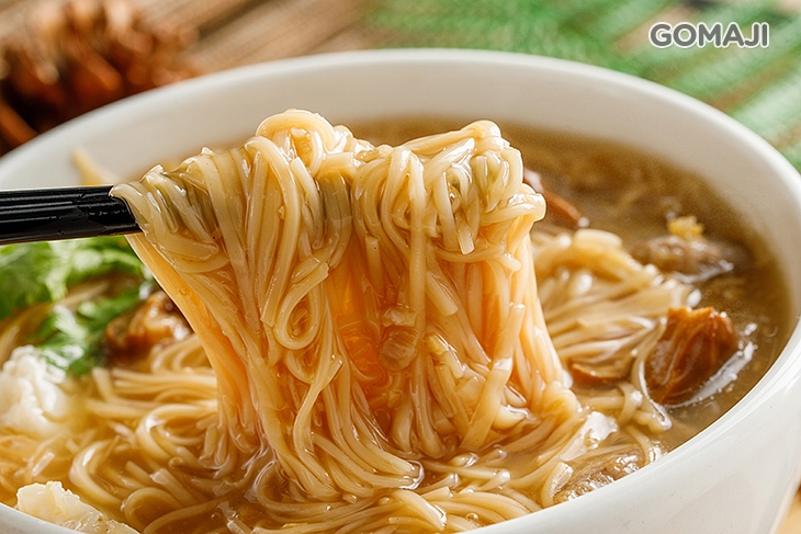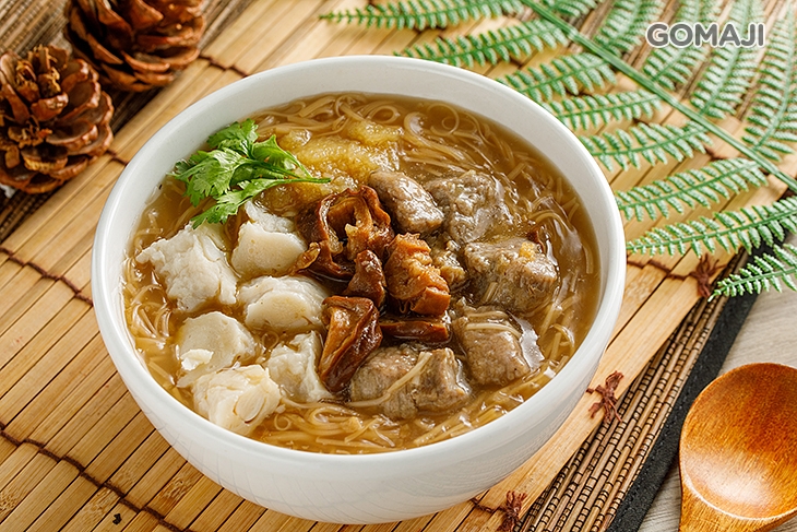 採用獨家秘製的湯頭,清爽順口,搭配新鮮大腸、花枝羹、肉丁、香菜等配料,你想吃的通通都在這碗綜合麵線,老闆從眾多優質麵線中精選出的手工紅麵線,麵線香Q滑順,吸上一口又一口好滿足!