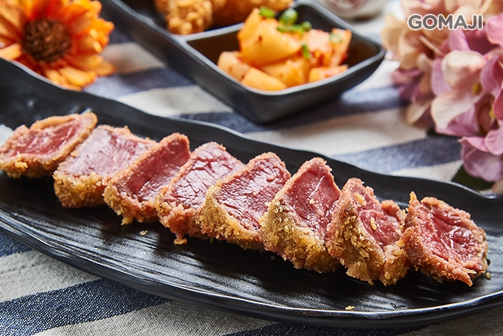 嚴選紐西蘭優質牛種部位肉 ,油花分布較少,肉質細嫩、口感鮮美!主廚先將紐西蘭菲力牛的表皮裹上薄薄麵衣,高溫快速油炸一下,讓牛肉保持在原本的鮮度,切片上桌,讓顧客可以再依自己的喜好,放置陶盤上文火慢煎調整熟度。讓您在享受菲力牛的美味同時,也能在過程中享受烹煮的樂趣喲!※圖為炸牛排,如炸牛排供量不足,會以烤菲力為主。