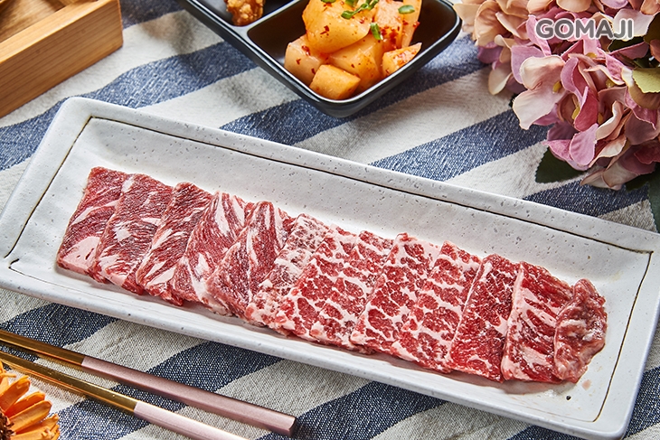 頂級嚴選重磅安格斯黑牛嫩肩牛排,紅白相間的油花紋路,片片勻稱陳列在盤上,色澤鮮豔美麗!由牛上肩胛快取出三筋的部位肉,文火慢煎,趁熱品嚐,鮮嫩可口、香甜迷人!搭配一旁白飯、配菜品嚐,幸福指數直攀顛峰!