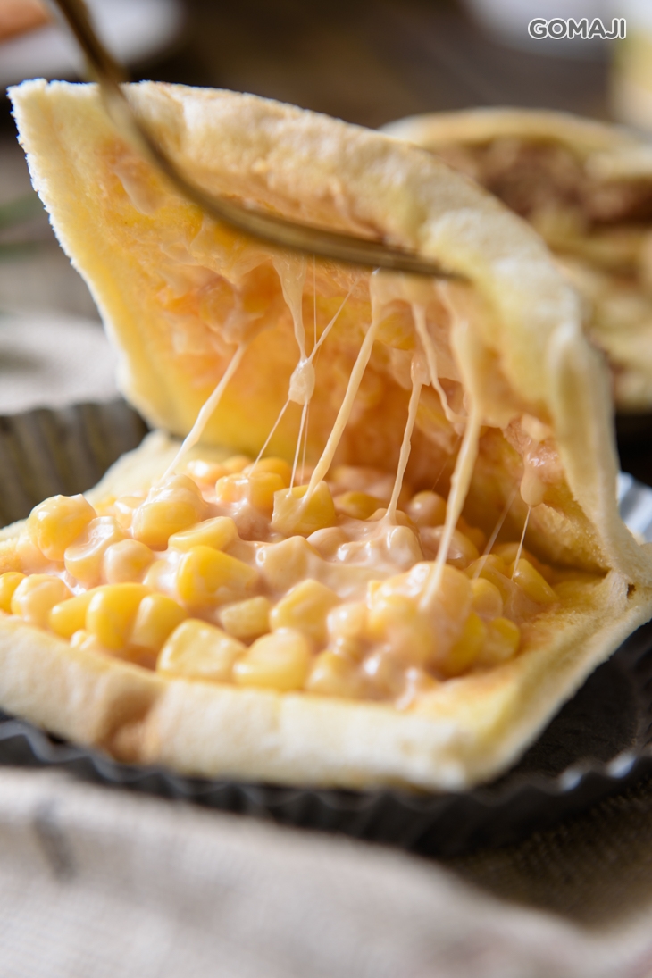 細緻綿密的吐司經過熱壓烤至微微焦香,再夾上滿到溢出的起士玉米,一打開可看出牽絲的誘人餡料,大口咬下美妙滋味在唇齒間蔓延,讓人大飽口福!