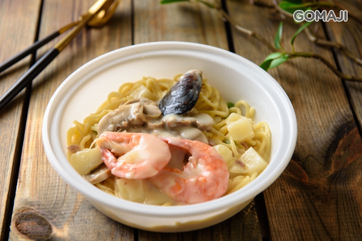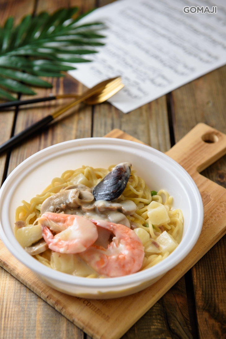 香濃滑潤的奶油白醬,緊緊依附在Q彈的義大利麵上,搭配鮮美蝦子與美味配料,噴香多汁,溫潤奶香就在舌尖上綻放,細膩的醬汁完美勾勒出麵條的滋味,保證大呼過癮!