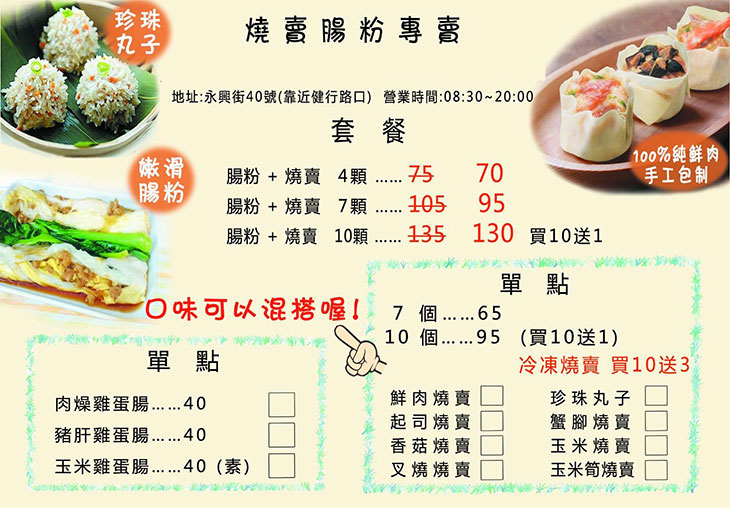 肉 呼 呼 燒 賣 腸 粉 菜單