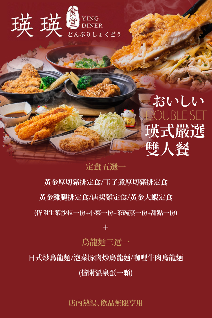 來到台中,除了到彩虹村拍拍照、高美濕地踏踏水、美術館看看展、逢甲夜市吃飽飽之外,還有一間您絕對不能錯過的日式和風餐廳,名為【瑛瑛食堂】。裝潢簡約,採光明亮的【瑛瑛食堂】,米白色的刷漆、老厝式的地磚、日本景點照的相框......,沒有過多華麗誇張的裝潢,僅以最簡單、最樸素、最平凡的風格呈現,給人有如「家」一般的溫暖與氛圍!餐點以提供多樣日式家常料理為主,食材嚴選新鮮、品質衛生把關、料理製作用心!「要做,就盡心盡力做好它,讓顧客不僅僅吃到餐點的美味而已,還有我們注入的那份愛與溫度。」本次與GOMAJI合作推出麻吉獨享超值優惠雙人餐,準備用美味的佳餚讓麻吉您一品來自【瑛瑛食堂】專屬的瑛式美味!