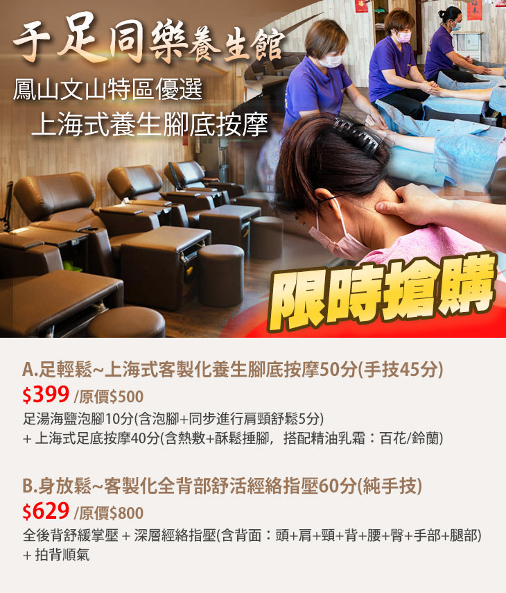 A.足輕鬆~上海式客製化養生腳底按摩50分(手技45分)