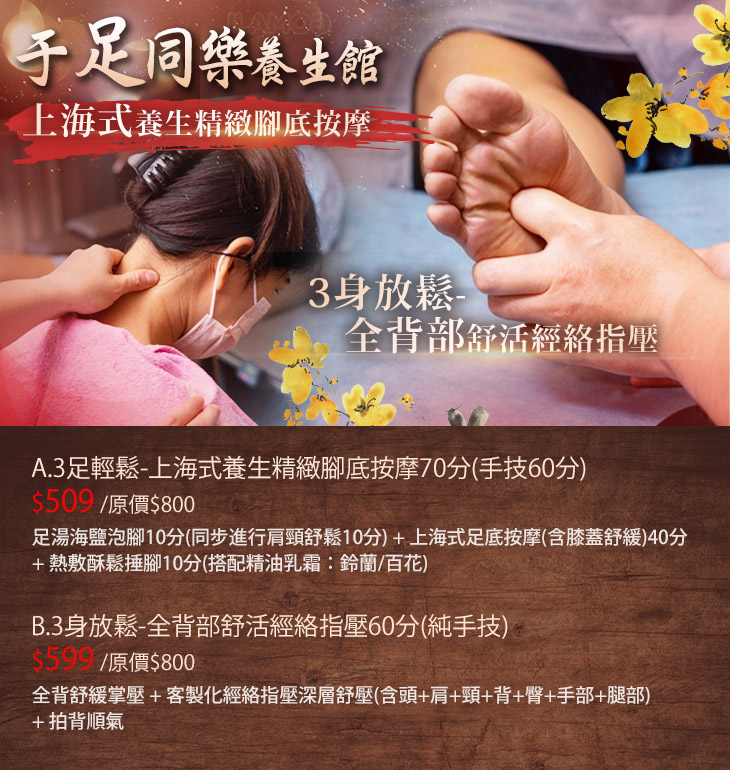 A.3足輕鬆-上海式養生精緻腳底按摩70分(手技60分)