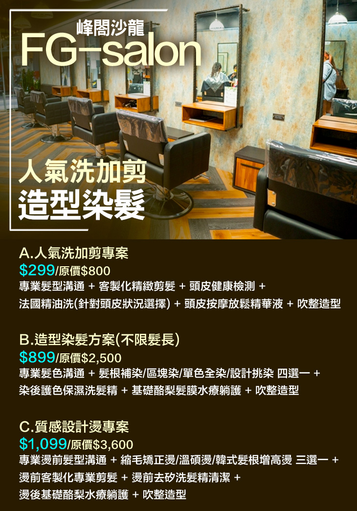 迎接派對前先來給【峰閤沙龍FG-salon】的設計師改造一番!這裡提供舒適明亮的環境,親切又專業的服務過程讓您賓至如歸;針對麻吉們推出優惠方案,無論是染、燙、護,都能在這裡找到最適合的造型;嚴選優質Salon,預約換髮型不必擔心踩雷!放心交給【峰閤沙龍FG-salon】。