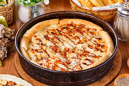 以阿嬤家自產自種新鮮自然的芭蕉搭配,稠香細緻的巧克力醬,一道完美迷人的芭蕉巧克力披薩浪漫上桌,品嚐時感受到餅皮帶著自然的麵粉香氣,與甜香結合,令人心滿意足!