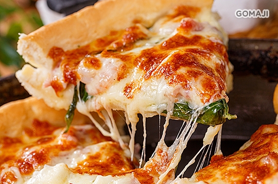 青蔥烤鴨竟然也能與披薩作結合!紮實餅皮配上金黃起司,融合蔥香與鴨肉的美味,層次豐富讓人愛不釋口!