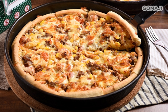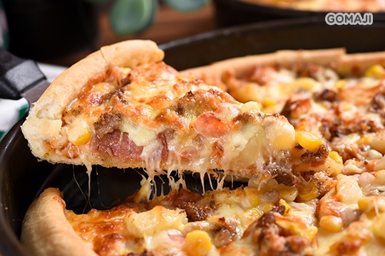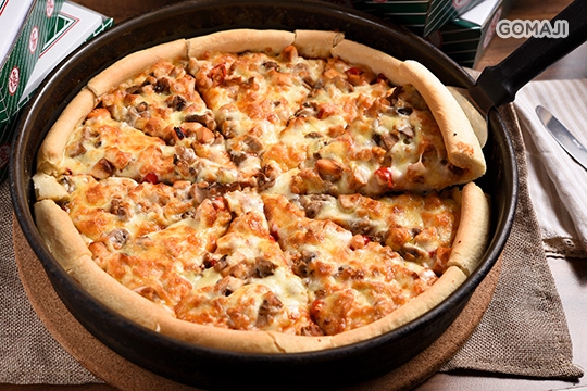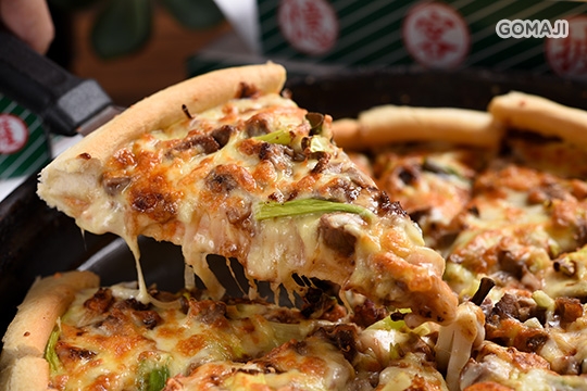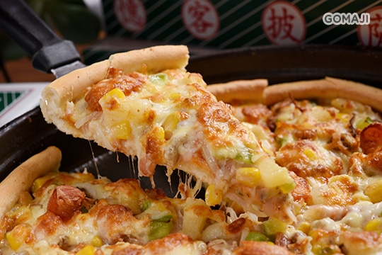 一道完美迷人的總匯披薩熱騰騰出爐啦!品嚐時感受到餅皮帶著自然的麵粉香氣與豐富食材的香濃,每一口令人心滿意足!