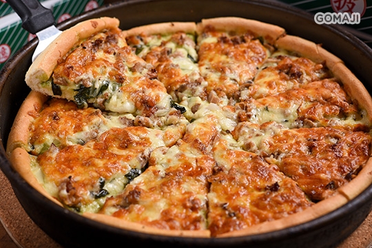 以香氣濃郁的青醬的與鹹香牛肉等食材入料,接著撒上大量的起司,烘烤過後帶出濃濃香氣,風味十足、口感絕佳,大人小孩都超喜歡!