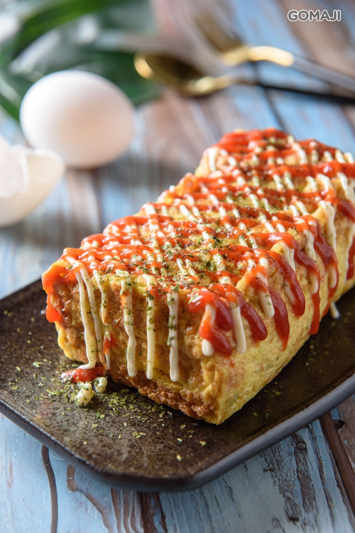 韓式千層蛋的製作方式,每煎ㄧ層,蛋汁與豐富的蔬菜就多放一層,一口咬下嘴裡散發滿滿的蛋香味,口感層次分明、實在的厚實感也讓份量十足!