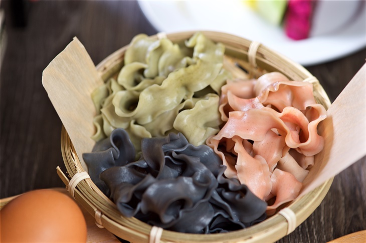 因擁有五種口味的麵條,而取名為五行刀削麵。外型有著如海帶一般的捲邊,粗度適中能帶給人們飽足感,粉紅、霧灰、草綠等色彩相互交織,每一種都很特別,嚐起來不僅Q彈柔滑,更充滿了迷人嚼勁,為整趟鍋物饗宴加上不少分。