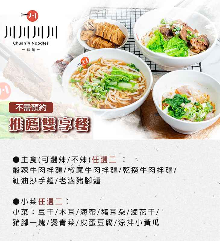 是不是不知道要吃什麼,或是沒有胃口?報給你一個好康!快來【川川川川】吃麵吧!極具巧思的一間店,以四個川字作排列,一進店裡,除了感受到乾淨舒適的用餐環境之外,還可以看到很多以「川」為主題的設計,非常有特色,但不只環境好看,餐點更是用心,從不辣到辣,都有各種辣度可供選擇,開胃的小辣、過癮的大辣,配上Q彈的麵食,超級療癒!