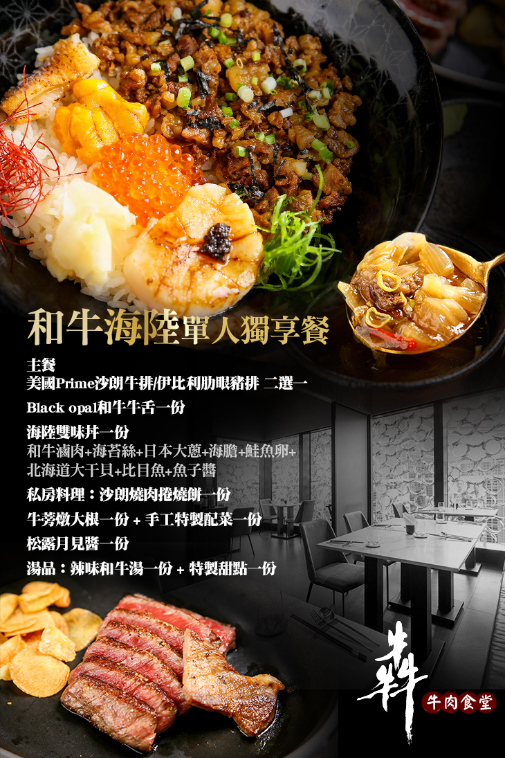 除了牛排、豬排料理,還有這道人氣不遑多讓的海陸雙拼,以Q軟米飯為基底,加入主廚特製和牛滷肉、頂級海膽、新鮮鮭魚卵、上等北海道大干貝等特選海鮮,豐盛、不計成本的擺盤,讓人感受到【犇 牛肉食堂 全牛鐵板燒】滿滿的誠意!料鮮味美,讓您體會什麼才是海底最最最具特色的佳餚饗宴!讓人無比陶醉!