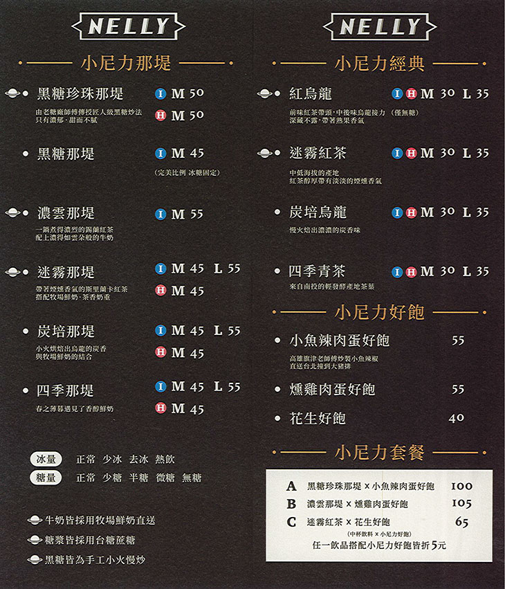 來到【NELLY 小尼力】還猶豫不知道點什麼的麻吉,這款推薦給您!以鮮奶、現煮珍珠及由老糖廠師傅傳授匠人級炒法的黑糖相組而成!大口啜飲,珍珠圓潤有嚼勁!牛奶與黑糖混搭甜而不膩!涮嘴滋味,讓人愈喝愈上癮!