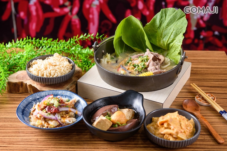 相較於香氣濃郁的麻辣湯底,豚骨白湯是大多數人都能接受的口味,溫潤清爽的湯汁風味,搭配上梅花豬的鮮甜,以及蔬菜的甘美都是絕配!除了主鍋外,旁邊的小菜豐富了整個用餐時刻,新鮮好吃,讓您吃得巧又吃得飽飽!