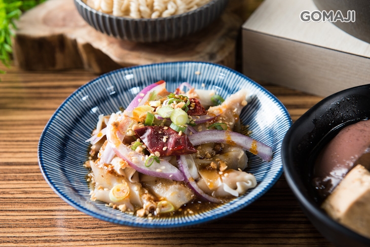 將滾水汆燙起鍋的麵條,甩盡多餘的水分,讓麵條保有Q彈性,再淋上一匙匙店家獨門自製的麻辣醬汁,麵條瞬間換上紅褐色澤的外衣,均勻攪拌後,辣香陣陣撲鼻,麻而帶辣、辣而帶勁的口感,讓人愛不釋口,喜歡吃辣的朋友千萬不要錯過了!